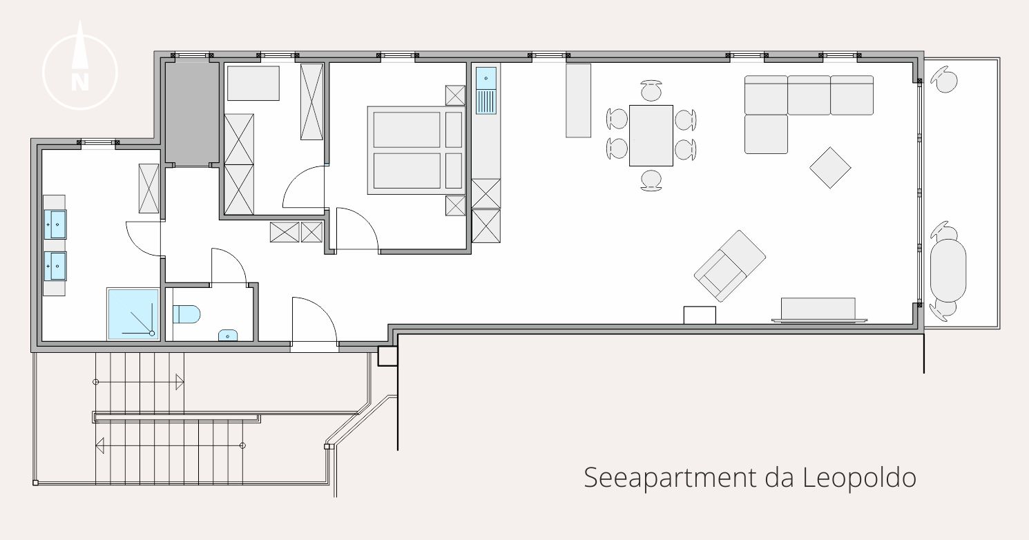 Das Seeapartment befindet sich im zweiten Stock und ist nur über eine Treppe (38 Stufen) erreichbar.