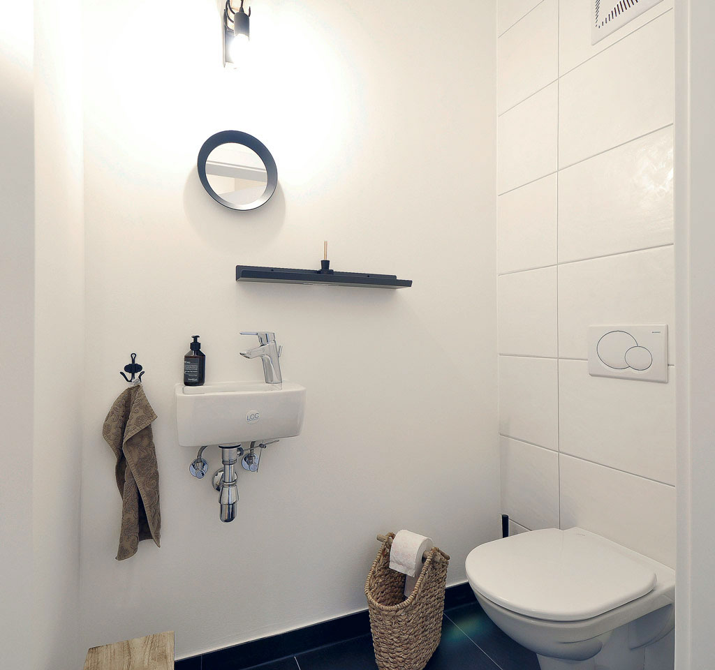 Die Toilette ist separat und wie alle Räumlichkeiten von der Diele mit Garderobe samt großer Spiegelwand erreichbar.